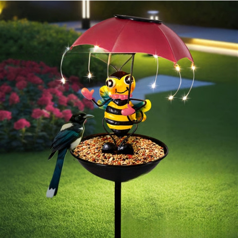 Zonnedier Paraplulamp Vogel Feeder Dual Functie Tuin Decor Licht Met Led Landschap Lamp Ip65 Ijzer Waterbestendig